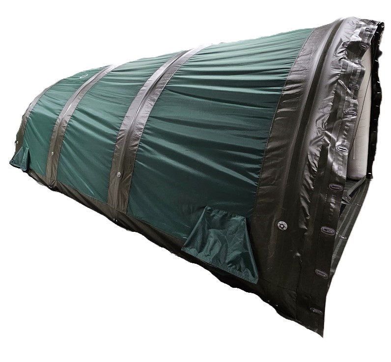 Den låga vikten uppnås genom att använda ett lättviktsmaterial i tältets huvudyta som är ett slitstarkt, vattentätt och flamsäkert tyg. Jämfört med andra material som t.ex. PVC, gör lättviktsduken att tältet är betydligt enklare att hantera vid montering och packning.